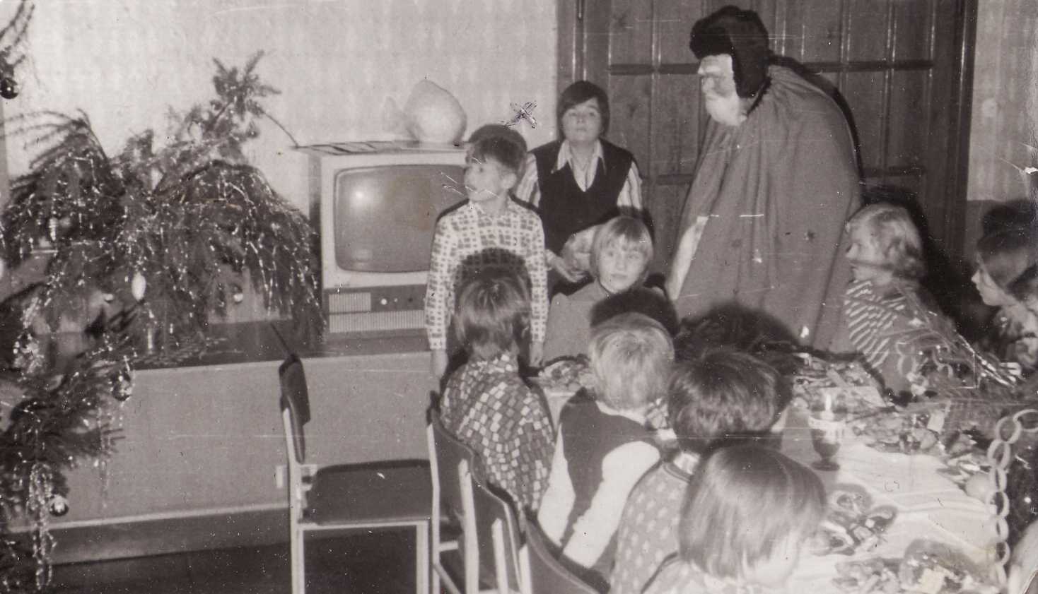 Stefan M. (stehend) zu Weihnachten im Kinderheim Rerik.