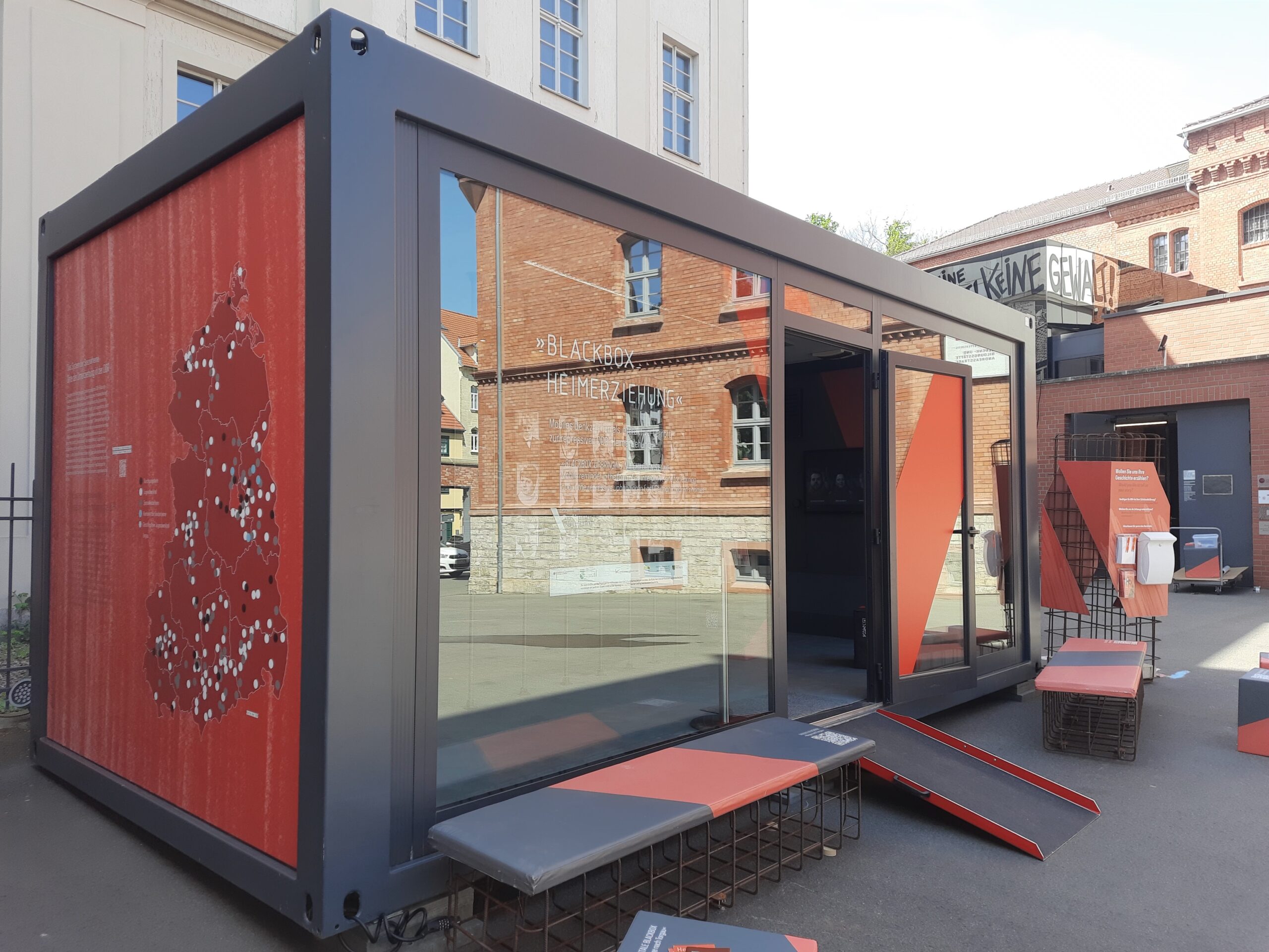 Vom 30. April bis 13. Juni 2024 war die BLACKBOX HEIMERZIEHUNG in der Gedenk- und Bildungsstätte Andreasstraße zu sehen.